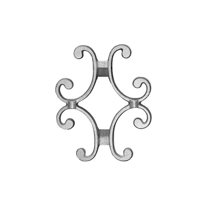 These aluminum picket castings are 5-1/2" wide by 6-5/8" high and fit over 1/2", 5/8" or 3/4" square bar.