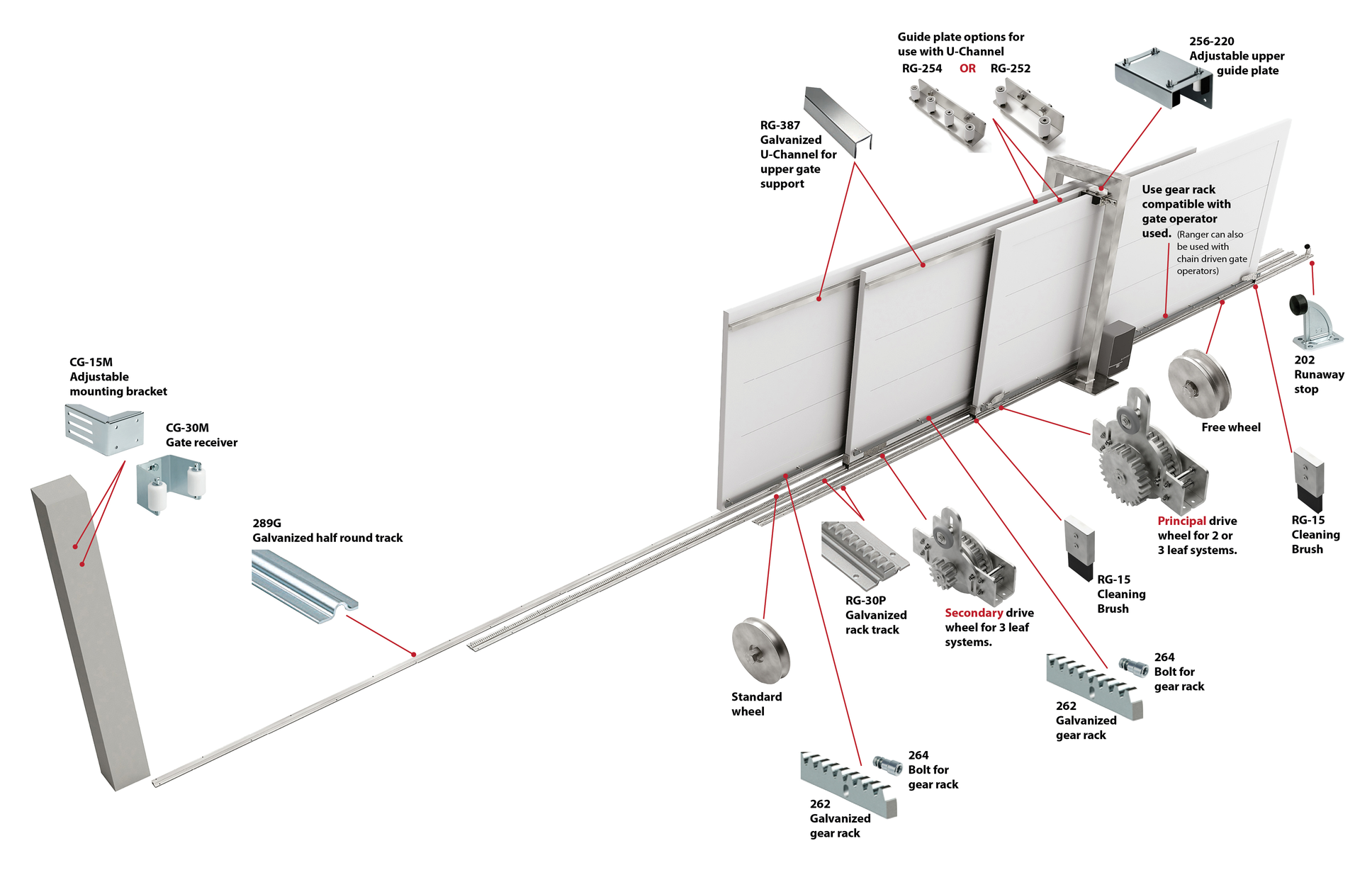 3 leaf telescoping system Max Gate Leaf of 14’7” and 440 lbs.