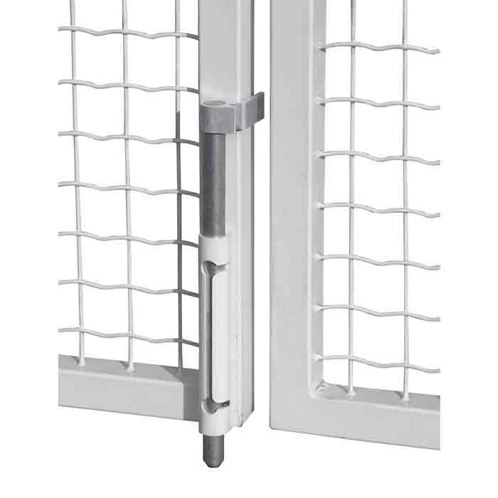 Surface Mounted, self locking dropbolts with the innovative quick-fix mounting hardware. The dropbolt is auto-locked between the double gates so no key is required. This model has an aluminum housing and is available with galvanized steel drop rod.