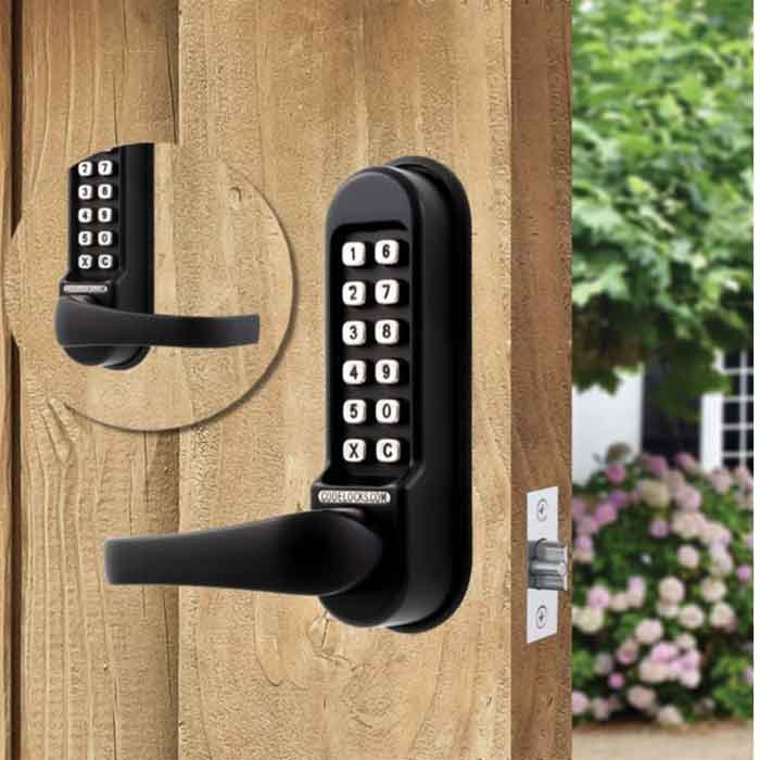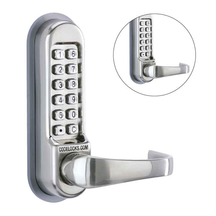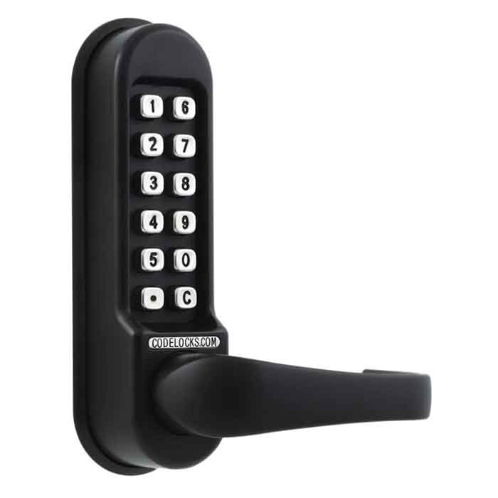 To change the code after fitting, the lock must first be removed from the door. The code is non sequential, that is the code can be entered in any order e.g. 1234 can be 4321 or 1342 or whatever is the most convenient sequence. With the 11 buttons a total of 2,047 different codes are available, any of which may be entered in any order.