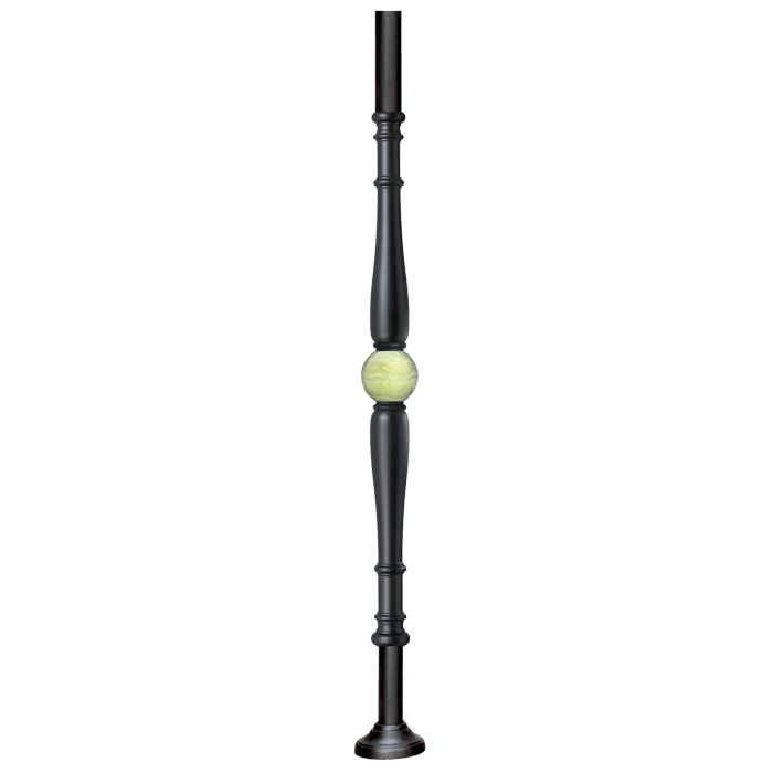 Grande Forge Black Series Posts and Balusters with a round base and a green onyx sphere in the center.