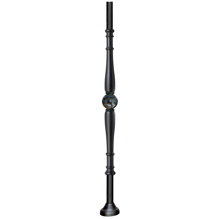 Grande Forge Black Series Posts and Balusters with a round base and a Labradorite sphere in the center.
