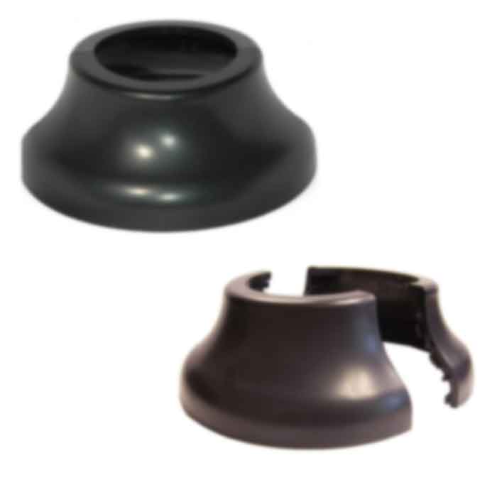 These split-shoes are supplied in a matte black finish, but can be painted to match your railing colors.